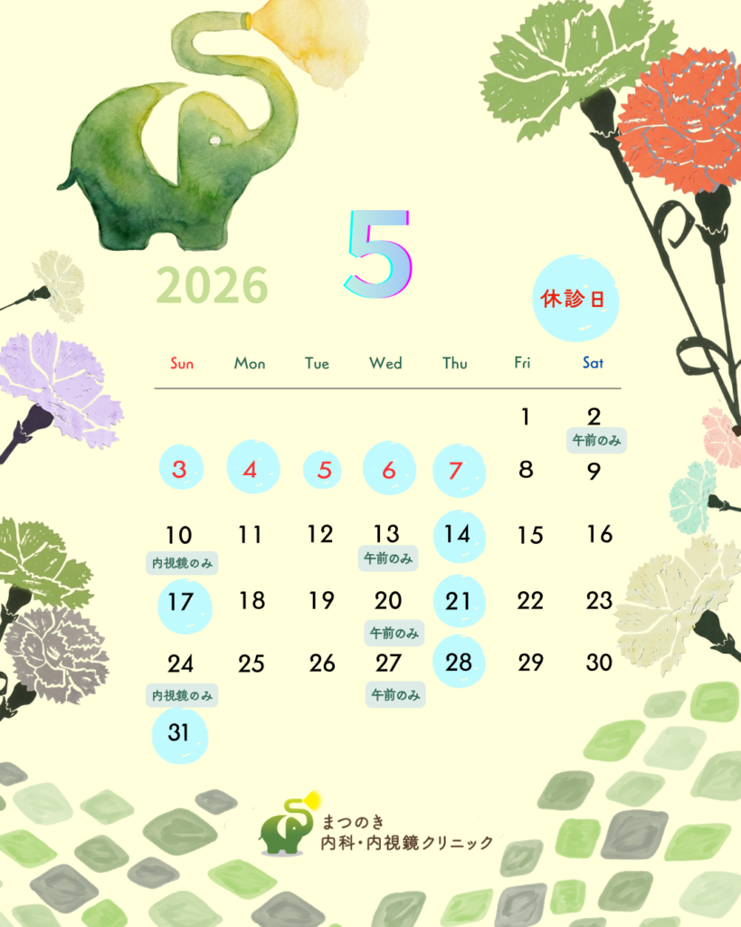 連休や休診日もございますので、ご受診の際はあらかじめご確認くださいますようお願いいたします。